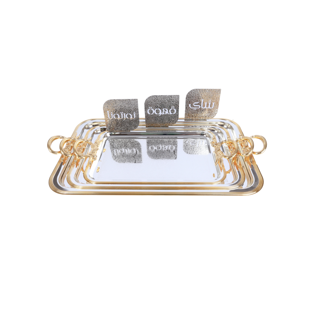 طقم تباسي نورتونا منقوش بتطريز مقلم ومقابض ذهبية لامعة
