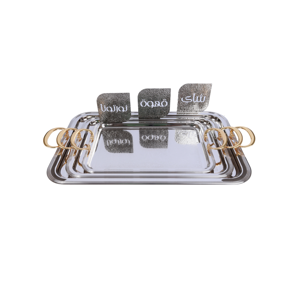 طقم تباسي معدني استيل أنيق بمقابض ذهبية